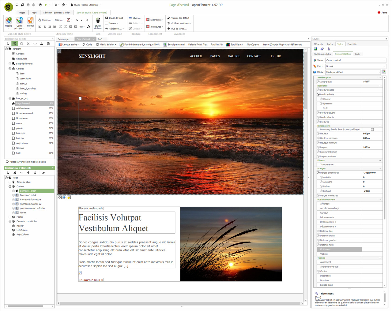 Il est utile de cocher cette case pour le dernier panneau de la page. Dès que possible, réduire la hauteur pour que le footer (la section Contenu Bas) rentre sur l'écran avec le panneau.
